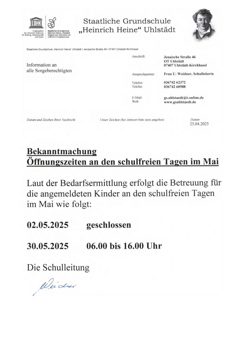 - Weihnachtsferien: 22.12.2025 – 02.01.2026 / (22.+23.12.2026 Hort geöffnet) / 29.12.25, 30.12.25, 02.01.26 Hort geschlossen) ...